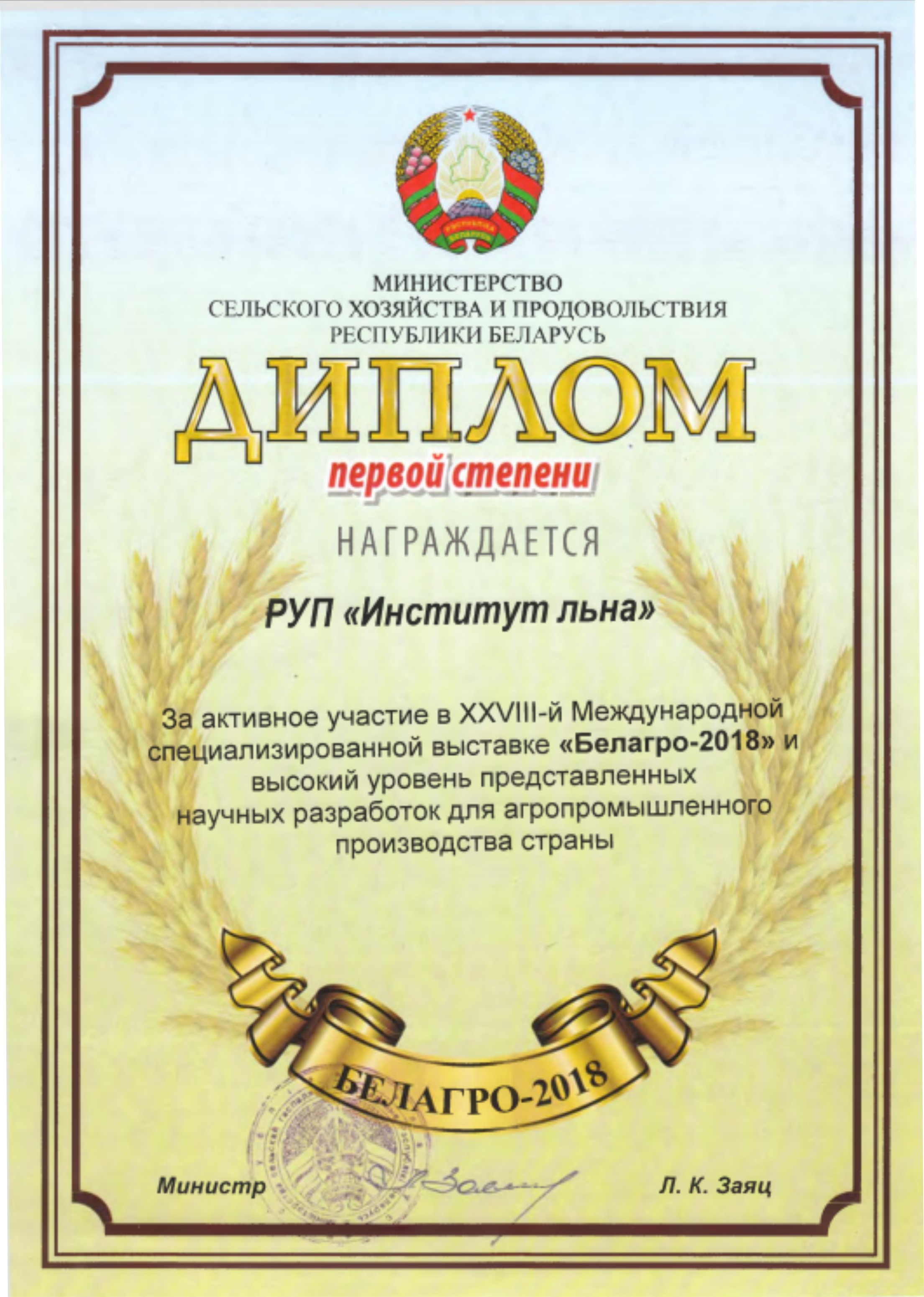 С 5 по 10 июня 2018 года в Минске прошла Белорусская агропромышленная неделя в составе международных специализированных выставок «Белагро-2018», «Белферма-2018», «Белпродукт. Пищевая индустрия -2018» и «Продмаш. Холод. Упак – 2018».