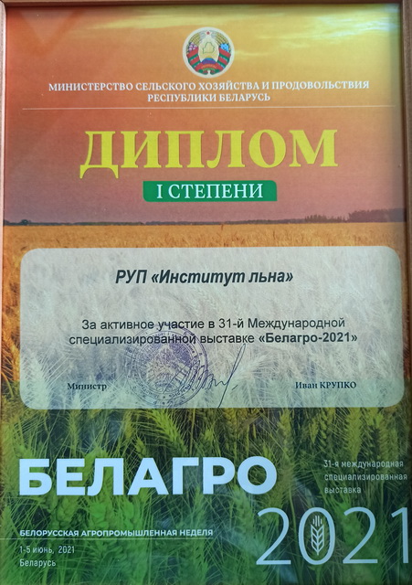Также в рамках выставки принял участие и РУП «Институт льна». На выставке были представлены образцы льняного волокна, семена сортов льна белорусской селекции и др.